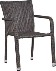 The Bay Terrace dining set creates a cozy area for outdoor refreshments. This relaxed, casual collection is crafted with brown woven wicker and an all-weather welded aluminum frame for rust resistance. The 28 inch round table is sized just right for smaller outdoor spaces while two bistro style arm chairs complete the collection with durable and stylish seating.