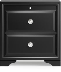 Bring a fresh look to your bedroom when you select the Belcourt collection. This contemporary suite is crafted using wood solids in a classic black finish. The eye appealing bed features a lattice style headboard and low footboard. The bed and coordinating pieces feature straight lines creating a clean, contemporary aesthetic. Thoughtful features include felt lined top drawers and a choice of round and bar shaped hardware in brushed chrome. Mattress and foundation (if required) sold separately.