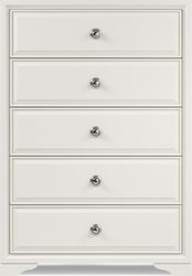 Bring a fresh look to your bedroom when you select the Belcourt collection. This contemporary suite is crafted using wood solids in a delightful white finish. The eye appealing bed features a lattice style headboard and low footboard. The bed and coordinating pieces feature straight lines creating a clean, contemporary aesthetic. Thoughtful features include felt lined top drawers and a choice of round and bar shaped hardware in brushed chrome. Mattress and foundation (if required) sold separately.