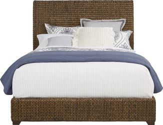 The beautiful Golden Isles collection brings a warm coastal look to any home. This chic suite is imbued with relaxed island inspired elements evocative of warm Caribbean nights. The focal point of the room is the stylish bed with its tropical woven style. Coordinating pieces are carefully crafted of poplar solids and Mindy veneers in a rich tobacco finish. Mattress and foundation (if required) sold separately. Bed shown is queen size.