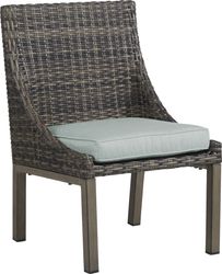 Make spring and summer memories with the Montecello outdoor dining set. This coastal contemporary collection, created with durable materials, is sure to be your go-to destination for patio dining. The 52 inch round table has a plank style top and is crafted with sturdy aluminum. Each coordinating chair is made with all-weather handwoven wicker over a fully-welded rustproof aluminum frame in driftwood-inspired shades of gray, tan and brown. A comfortable Sunbrella seat cushion in a mist color is mold, mildew and fade resistant for a long-lasting enjoyment. 100% Sunbrella fabric. To clean Sunbrella fabric cushions remove dirt and spray on cleaning solution (water and mild soap), then use a soft bristle brush or sponge. Allow cleaning solution to soak into fabric and rinse thoroughly until soap residue is removed. Air dry. Do not dry clean.