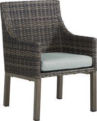 Make it a patio party with the Montecello outdoor dining set. This coastal contemporary collection, created with durable materials, is sure to be your go-to destination for patio dining. The 84 inch rectangle table has a plank style top and is crafted with sturdy aluminum. Each coordinating chair is made with all-weather handwoven wicker over a fully-welded rustproof aluminum frame in driftwood-inspired shades of gray, tan and brown. A comfortable Sunbrella seat cushion in a mist color is mold, mildew and fade resistant for a long-lasting enjoyment. 100% Sunbrella fabric. To clean Sunbrella fabric cushions remove dirt and spray on cleaning solution (water and mild soap), then use a soft bristle brush or sponge. Allow cleaning solution to soak into fabric and rinse thoroughly until soap residue is removed. Air dry. Do not dry clean.