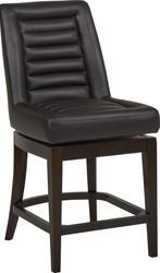 Bring a sleek, contemporary look to your dining space with the 60 x 60 inch hexagonal Clairmont Heights table. The stylish base and top are crafted from wood solids and Mindy veneers in a rich Merlot finish. The addition of three stylish swivel stools upholstered in a black fabric offer a comfortable place to sit at your table.