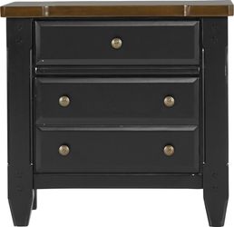 Create a charming retreat with the Cottage Town bedroom. This traditional collection is crafted with poplar solids and boasts a two-tone look created by cherry veneers and a classic black finish. The lovely panel bed features classic vertical panels that evoke a warm farmhouse aesthetic. Matching pieces have metal knobs and clean, crisp lines. Each element conspires to create a relaxed, beautiful sanctuary. Mattress and foundation (if required) sold separately. Bed shown is queen size.