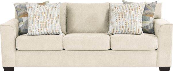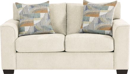Like a gentle breeze on a warm day, the Delcrest collection is a breath of fresh air with its calming hues and soothing ambiance. This contemporary living room is upholstered in a plush white colored chenille, and its graceful silhouette is enhanced by rounded wedge arms and tapered square legs in a warm brown finish. The matching swivel chair is the perfect addition for gatherings and everyday enjoyment while woven accent pillows fully set the scene with their complimentary mosaic pattern. Upholstery: 100% Polyester. Cleaning Instructions: Use water based cleaning agents or foam.