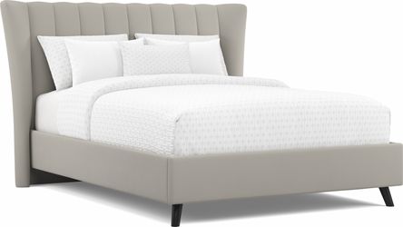 Boost the look of your space with the mid-century modern style of the Devon Loft bedroom collection accompanied by the extravagance of the Nanton Park queen bed. Upholstered in plush gray velvet, the headboard features a gorgeous wingback style complete with vertically tufted channels. This suite's dresser and mirror are crafted from poplar and pine solids with walnut veneers in a rich brown finish. The dresser features English and French dovetail joints for greater strength and longevity. Mattress and foundation (if required) sold separately.