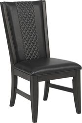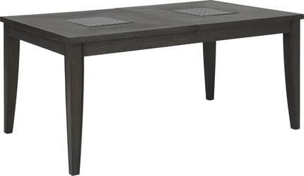 Crafted of poplar solids and oak veneers, the Encore dining room from the Eric Church Highway To Home Collection is the ideal centerpiece for your dining space. Featuring a unique table top with central glass panels and diamond quilted upholstery inserts, the dining table sits atop a set of slim legs for contemporary flair. The modern inspired side chairs sport matching quilted upholstery and generously padded seats for added comfort.
