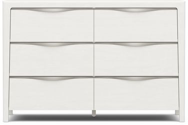 Shoot for the moon and land among the Stardust collection, where styling your kid's bedroom is a total blast. Modern curves meet subtle sparkle in this dreamy set, with a shimmering pearlized white finish on poplar veneers and soft champagne-toned hardware for a light, bright look. Framed by smooth lines and a versatile silhouette that melds effortlessly into teen and tween spaces alike, the full-size panel bed makes a strong impression. The matching dresser provides generous storage with six drawers for clothes, extra bed linens and more. Built with enhanced durability and everyday ease in mind, it is equipped with French dovetail front and English dovetail back drawer construction and ball bearing glides. The piece's dust-proof bottom panels even guard against dust bunny invaders. With a clean, tight frame that looks sharp above the dresser, the coordinating mirror helps open the look of the room and makes getting ready easier. Mattress and foundation (if required) sold separately.
