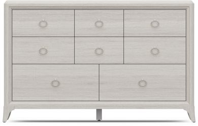Like most kids, the Vivien collection is the perfect alchemy of equal parts daring and darling. Crafted to have a pearlized white effect with wirebrush gray finish, the panel bed features an arched headboard with pencil reed embellishments adorned in a bursting sun pattern. Crafted with felt lined top drawers, a hidden jewelry tray, a pair of AC ports and matching USB power ports, the dresser is equipped with an abundance of storage features and ultra convenient charging. Each drawer is constructed with soft, self-closing glides and features front and back English dovetailing for enhanced durability. The dresser comes with a storage hutch that features a long shelf and a white LED touch light for the perfect final touch. Mattress and foundation (if required) sold separately.