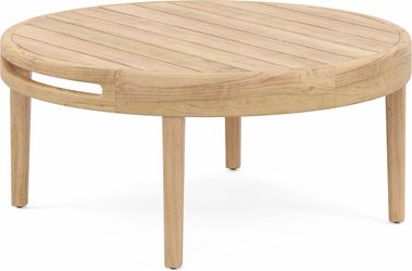 The good life is on deck with the chic and playful style of the Riva patio seating set. This stunning conversation set features frames crafted of solid teak in a blonde finish, each gently sloped arm threaded with a gorgeous lattice of marine-grade rope in colorfast navy blue secured with a nautical knot. Reversible white seat and back cushions offer plush comfort in durable, UV-resistant outdoor fabric. A cocktail table with a slatted top completes the look.