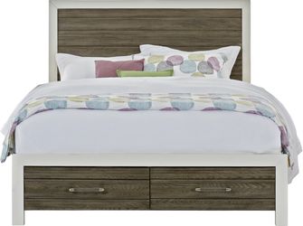 Contemporary glamour with a sleek style, the Santa Fiora collection creates a chic environment ideal for lounging, primping or snoozing. Crafted of wood solids and oak veneers in a two-tone gray and white finish, this collection features a panel bed with multi-dimensional paneling and two roomy drawers on the footboard. Gray drawer fronts adorned with clear acrylic and metal pulls add an alluring designer touch. Mattress and foundation (if required) sold separately.